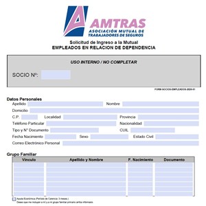 En caso de presentar la documentación en forma digital, la solicitud bajo ninguna circunstancia podrá ser en formato imagen (PNG o JPG). El formulario de socio de AMTRAS que se env e digitalmente siempre deberá ser en el formato PDF original del mismo. Cualquier formulario en formato imagen, o en formato PDF pero cuyo origen sea una imagen (por ejemplo, una foto del formulario pasada a PDF) no se tomará como válido y será rechazado.